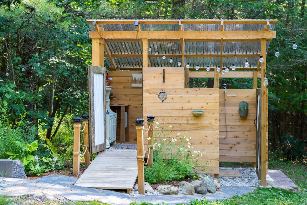 The Woodland Retreat is a peaceful Forest Oasis eco-retreat set amongst pine, ash and maple trees. Enjoy all the comforts you need in a creative outdoor setting. Our new star gazer Geodesic Dome features everything you need for a memorable and comfy stay. Enjoy a deluxe composting toilet, hot water shower under the stars and outdoor kitchen. We are located in the Heart of the Niagara Escarpment. Enjoy waterfalls, hiking trails, rivers, and Beaches. All within 5 minutes of the Town of Meaford.