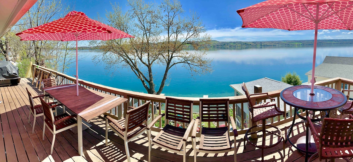 Welcome to Keuka lake in this beautiful home that boasts 3 master suites. The living room has a panoramic view of Keuka Lake. There is a deck off the top floor and a patio off the first floor to sit and enjoy the lake view as well. From the downstairs patio you are only a few steps to the beach. At the end of the dock the lake is only 3 feet deep so it’s excellent for swimming. Everything in this house is new and very clean. We are a mile from downtown Penn Yan.