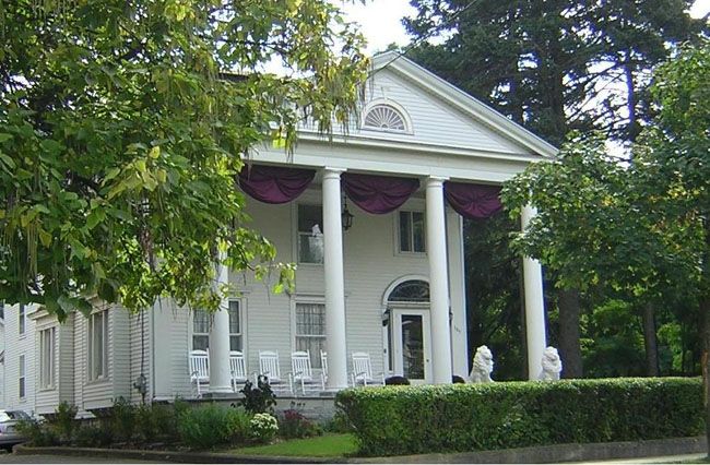 Maxfield Inn is a newly restored 1841 mansion in the village of Naples, New York. Its vintage ambiance on the inside, plus the beautiful picturesque setting with mountains, trees & English Gardens make it really special. Grand white pillars adorn the facade where guests can mingle on the front porch. Guests have an option to order a full breakfast for an additional $40 per room per morning. Please let us know in advance of your stay if you would like us to prepare that for you!