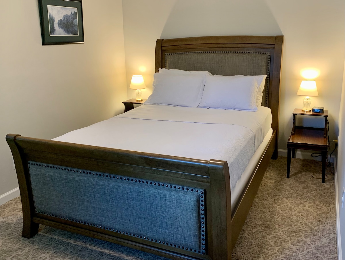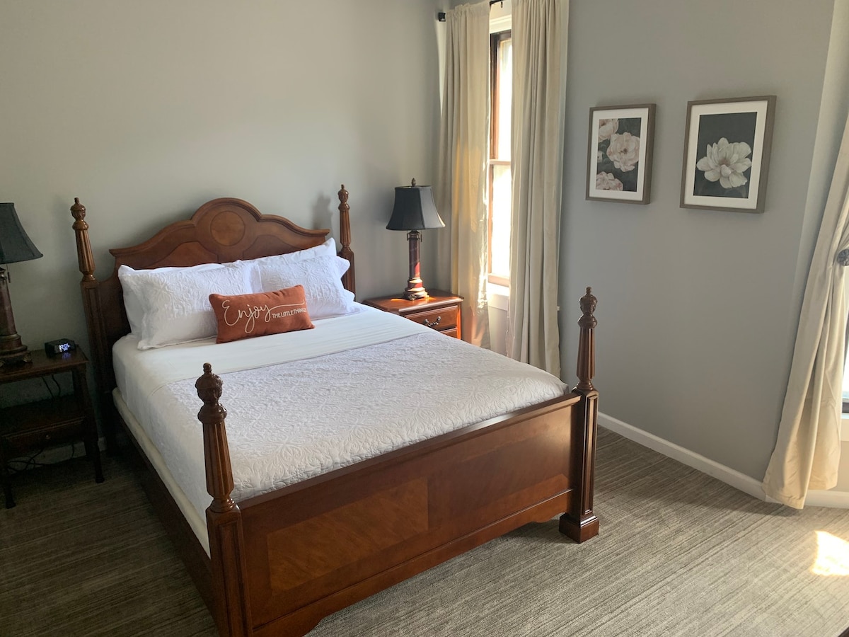 The Maxfield Inn is a newly restored 1841 historic mansion in the village of Naples New York. Its vintage ambiance on the inside, plus the beautiful picturesque mountains, trees and English gardens make it really spacial. Grand White pillars adorn the facade where guest can mingle on the front porch. Inside, the decor is adorned with area rugs, hardwood floors and vintage furnishings. A round sun porch is the perfect spot for breakfast. The bedroom is very small as it was a servants room.