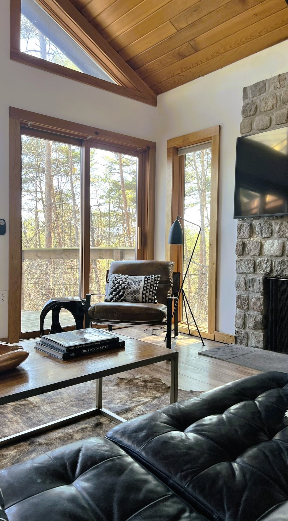 Our modern guest home is surrounded by nature and ideal for couples and families with children, featuring a large deck, fireplace, fully equipped kitchenette, private bedroom (King bed), and our guest favorite sleeping loft with a private balcony with views of Canandaigua Lake. Pack light, we provide essentials for remote work, home fitness, and children. Community amenities include racket courts, playground,& beach. Jump in the lake, tour wine country, and hike bike or ski at Bristol Mountain.