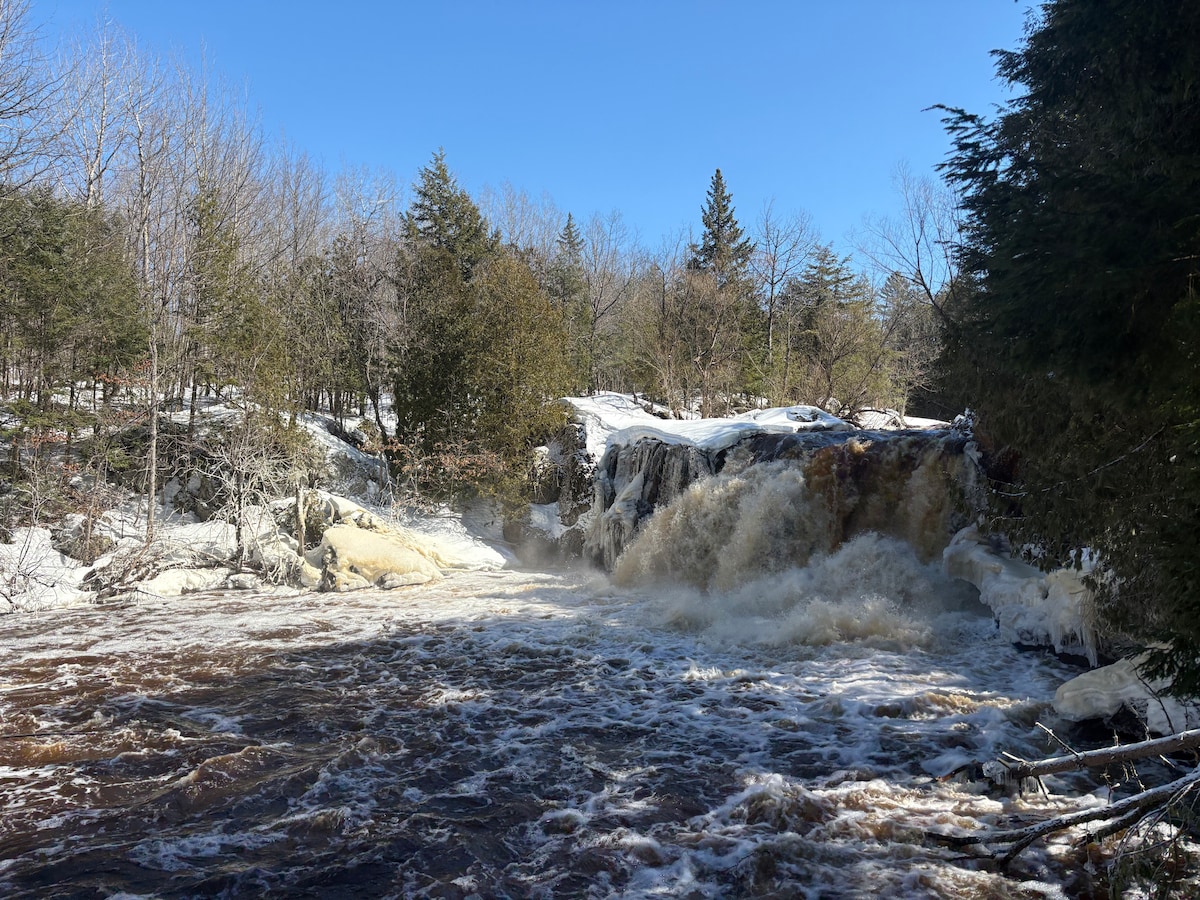 Cabin Fevers is your cozy UP chalet getaway with lots of beautiful and awesome things to see nearby, every day. Wake up to the peace of Michigan's Upper Peninsula, sip coffee on the back deck, surrounded by woods, and end your day unwinding in your private SAUNA or by the fire pit under the stars. Whether you're here for motorcycling, snowmobile trails, chasing waterfalls, skiing the nearby slopes, or dipping your toes in Lake Superior, Cabin Fevers UP is your perfect year-round chalet.