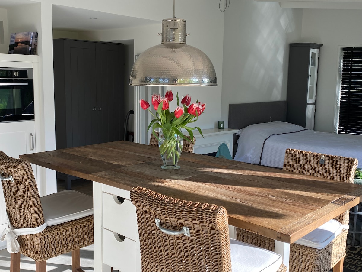 Ons huisje staat in één van de mooiste Waterlandse dorpen, Broek in Waterland. Het bevindt zich in een prachtige omgeving, op 8 km van Amsterdam. Op 3 minuten lopen afstand vind je de bushalte, waardoor je binnen 12 minuten op Amsterdam Centraal staat. Het gastenverblijf zelf biedt alles wat je tijdens een vakantie nodig hebt. In ons gastenverblijf is het dus heerlijk 'thuiskomen' na bijvoorbeeld een drukke dag in de stad, of bijvoorbeeld een fietstocht langs alle leuke dorpjes hier in de buurt.