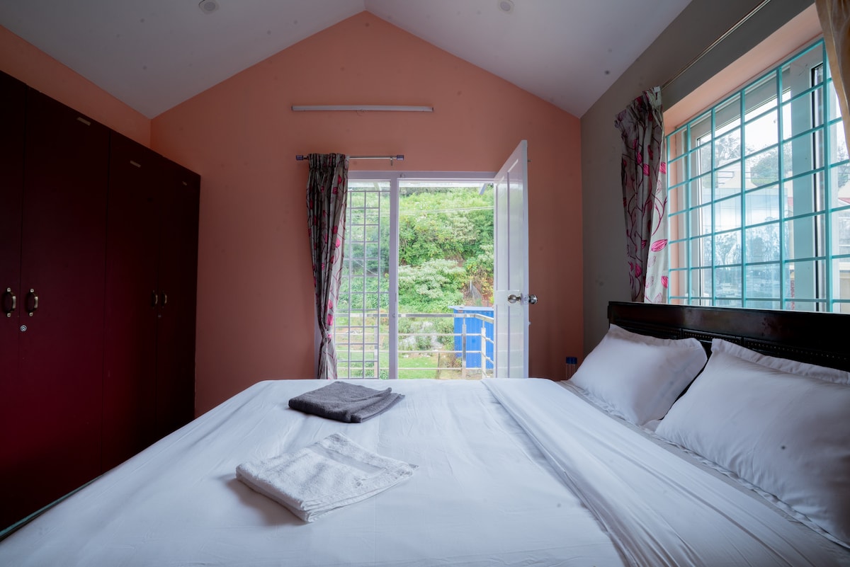 Sleep like a Raja in this 3-bedroom villa where the bedding is sourced from the same company that supplies to Hyatt & Raddison. Just 6 minutes away from the Rose Garden in Davisdale, enjoy breathtaking hill views from the roof-top, a peaceful ambience, and modern amenities. Soak in the fresh mountain air, watch sports on our 100 inch screen with friends or sing karaoke with your family and make unforgettable memories in the Queen of Hills.