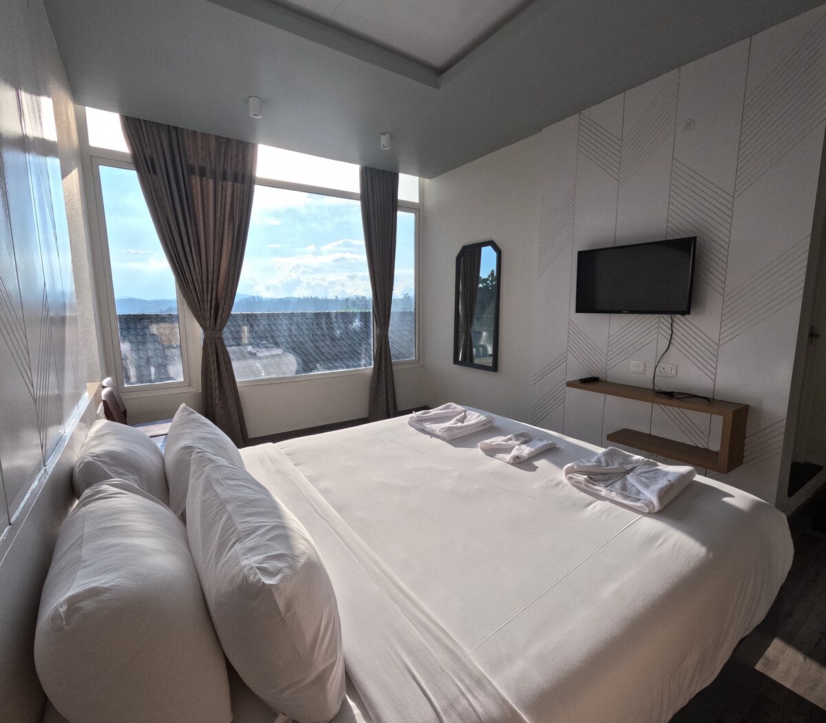 Unwind in our serene room with stunning hill and framing views from your private balcony, where you can connect with nature. The room is equipped with modern amenities, including Wi-Fi and TV, to keep you entertained and connected. Our dedicated housekeeping team ensures the room is spotless and cozy, providing a comfortable space for reflection and relaxation. Enjoy the fresh air and scenic views from your cozy balcony.