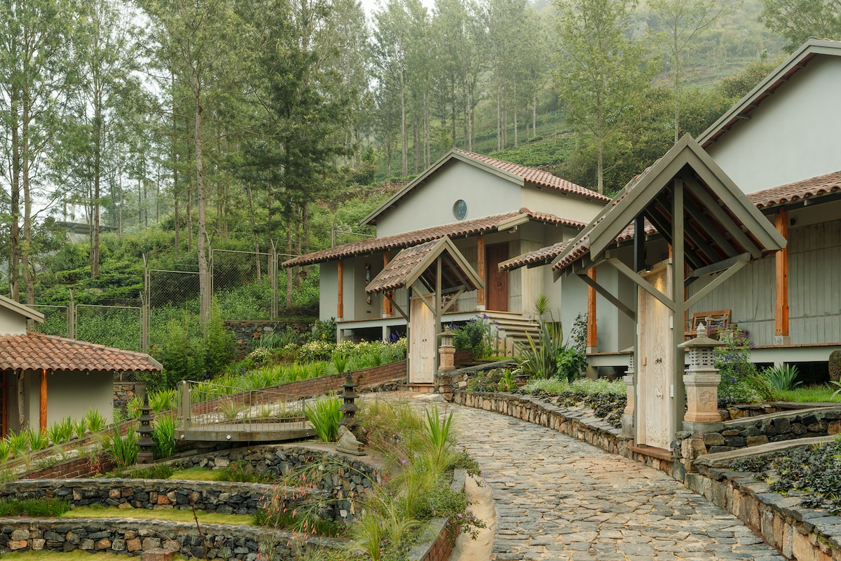 Wake up to breathtaking Nilgiri mountain views in our glass villa with a private patio and tea garden. Step outside to a lush private tea garden and a charming covered patio surrounded by a flower garden - perfect for morning walks, chai breaks, and sunset views to relax in. Home-cooked meals (breakfast, lunch and dinner) are available on request for a truly cozy stay