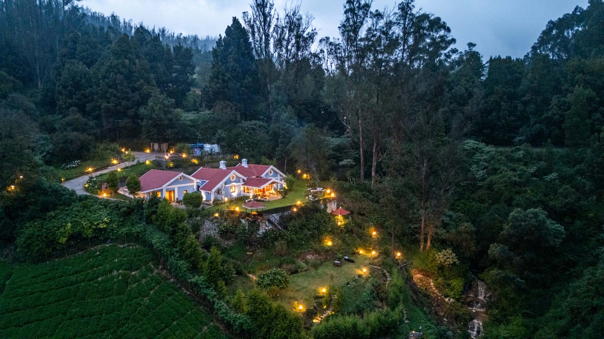 Wake up to breathtaking Nilgiri mountain views in our glass villa with a private patio and tea garden. Step outside to a lush private tea garden and a charming covered patio surrounded by a flower garden - perfect for morning walks, chai breaks, and sunset views to relax in. Home-cooked meals (breakfast, lunch and dinner) are available on request for a truly cozy stay