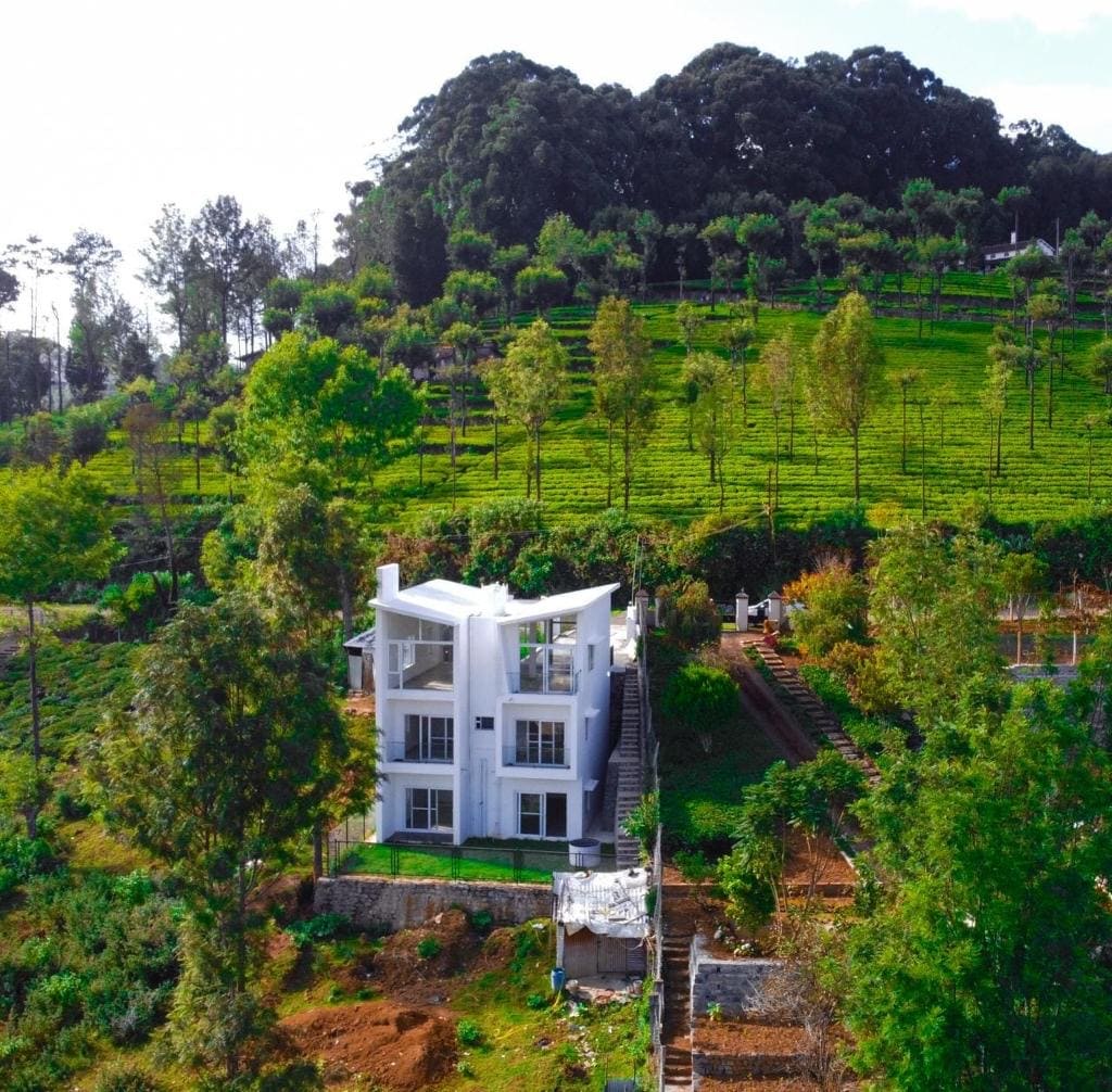 Escape to The Aerie – Kotagiri, a thoughtfully designed luxury villa perched dramatically over a cliff, offering breathtaking panoramic views of the Nilgiris. With a Scandinavian-modern aesthetic, this villa is a masterpiece of minimalist luxury, featuring solid teak wood furniture, polished concrete floors, and expansive glass windows that seamlessly blend indoor and outdoor spaces.