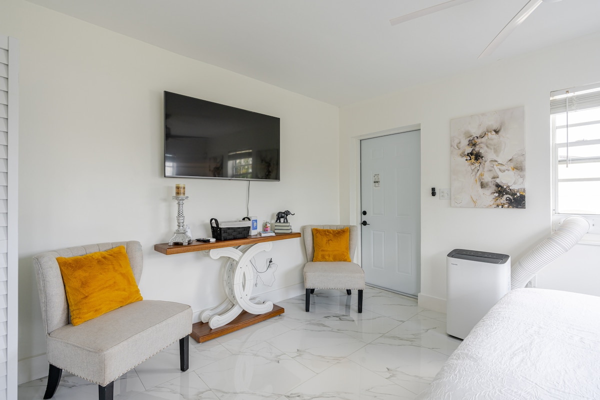 Welcome to our modern and spacious studio, the perfect spot for comfort and convenience in Miami. Located just 5 minutes from the Hard Rock Stadium (20 minutes walking, save on parking), midway between Miami and Fort Lauderdale airports, and only 25 minutes from Hollywood and Fort Lauderdale beaches. Enjoy easy access to Sawgrass Mills, Florida’s largest mall. Our studio is private, secure, fully fenced, and offers the style and cleanliness to make your stay unforgettable.