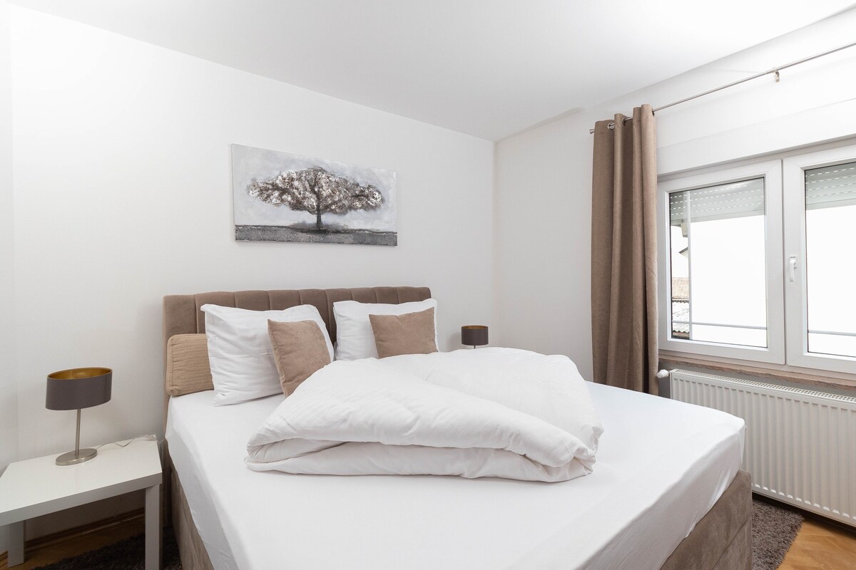 Comfortable, designer-decorated space, excellently equipped. 5 min walk to the city center, shops and neighborhood cafes close at hand, 5 min from the train and main bus station, close to the city market. PVC-enclosed balcony with sliding doors for a comfortable stay in colder weather, fully equipped kitchen and bathroom, optical Internet, WiFi, Android smart TV diagonal 55 inches with all Internet services: Netflix, HBO, movie package, Spotify,... , computer, bike for use,... Self check-in.