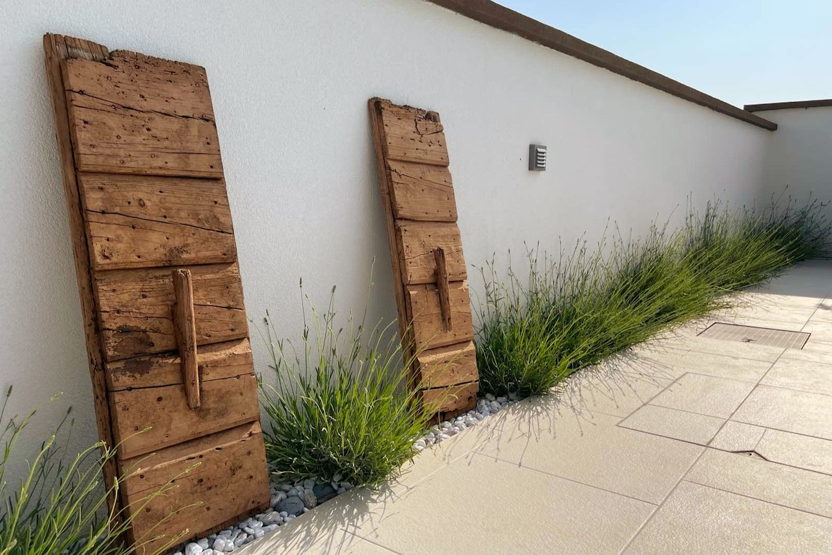 The only apartment in our house with full privacy. It's a newly renovated and fully equipped two bedroom apartment with a modern open-space design with a unique high wooden ceiling. The parking is free and located in front of your apartment. The apartment has 80 m2 which will ensure a very comfortable stay. It's located in a typical quiet Istrian village only 5 minutes drive from the beach and 5 minutes from the famous Aquapark Istralandia. The Quattro Terre MTB trail goes through the village.