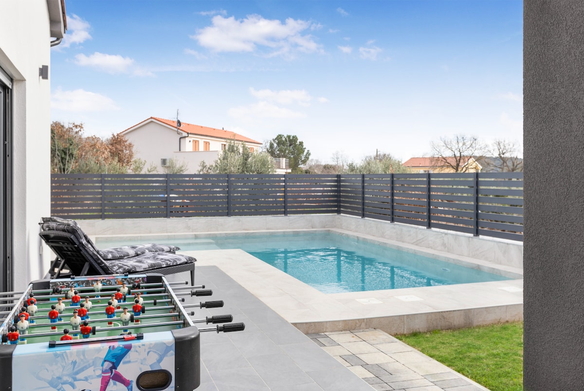 Villa Irena is a perfect family getaway for up to 5 guests. This 3 bedroom villa feautures your own private pool, gated parking spaces, 2 bathrooms and a fully equipped kitchen with an outside BBQ. With supermarkets, restaurants and beaches all withing a convinient 1000m radius! Explore nearby locations like Pula, Medulin, Kamenjak or go deeper into the hearth of Istria with a nearby highway connection, you can easily plan your daily trips and explore towns like Rovinj, Poreč, Motovun and more!