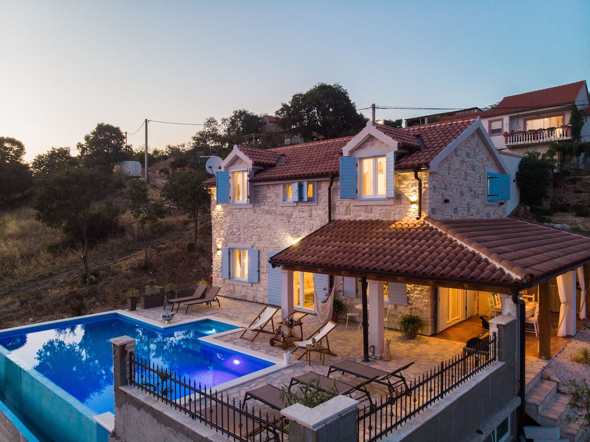This brand new villa is located in a quiet location close to nearby beaches, restaurants , supermarkets and bars. The house consists of two bedrooms, living room with dinning room, fully equipped kitchen and bathroom. The bedrooms are air-conditioned and the pool is private. Our guests have free parking, WiFi and barbecue. The Krka national park and the Kornati national park are located in our surroundings.