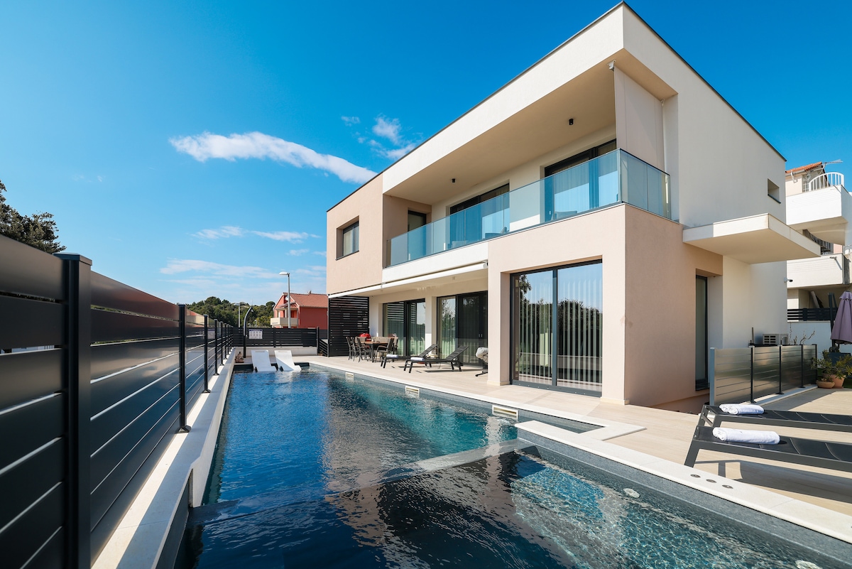 Villa Fine Touch is a beautiful newly constructed holiday home located in Biograd na Moru, only a short 10 minute walk from the nearest beach. Located in a quiet neighborhood away from the tourist crowds, it offers a peaceful stress free vacation for a group of up to 8 persons. During the visit by My Dalmatia we were impressed by its elegant design and a great outdoor lounge area with jacuzzi.