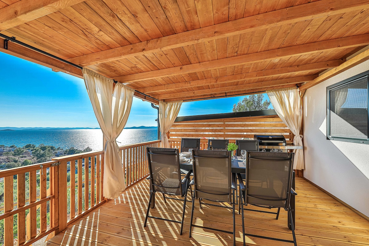 SPIRIT ONE VILLA - 1ST SEA LINE BY BEACH an oasis of peace in the heart of Dalmatia along the coast between Biograd and Šibenik. You will wake up in a place of immense natural beauty, with unobstructed panoramic views overlooking the golden Adriatic Sea and the magical islands of Kornati. Our villa is made out of love for wood and green tourism and as their contribution to the world for a more sustainable future for next generations.