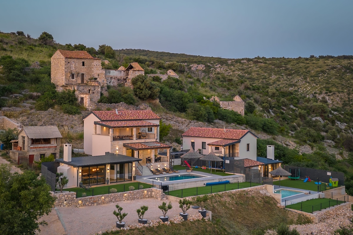 This villa will captivate you at first sight with its charm and perfect blend of traditional and modern architecture that will give you a dream vacation. Situated in Nature park Vransko Jezero, it is an ideal combination of relaxing, active vacation and nature exploration. We accomodate 8 people in 3 bedrooms and a large sofa in the living room, two fully equipped bathrooms, separate toilet, 3 parking places and 21m2 private pool.