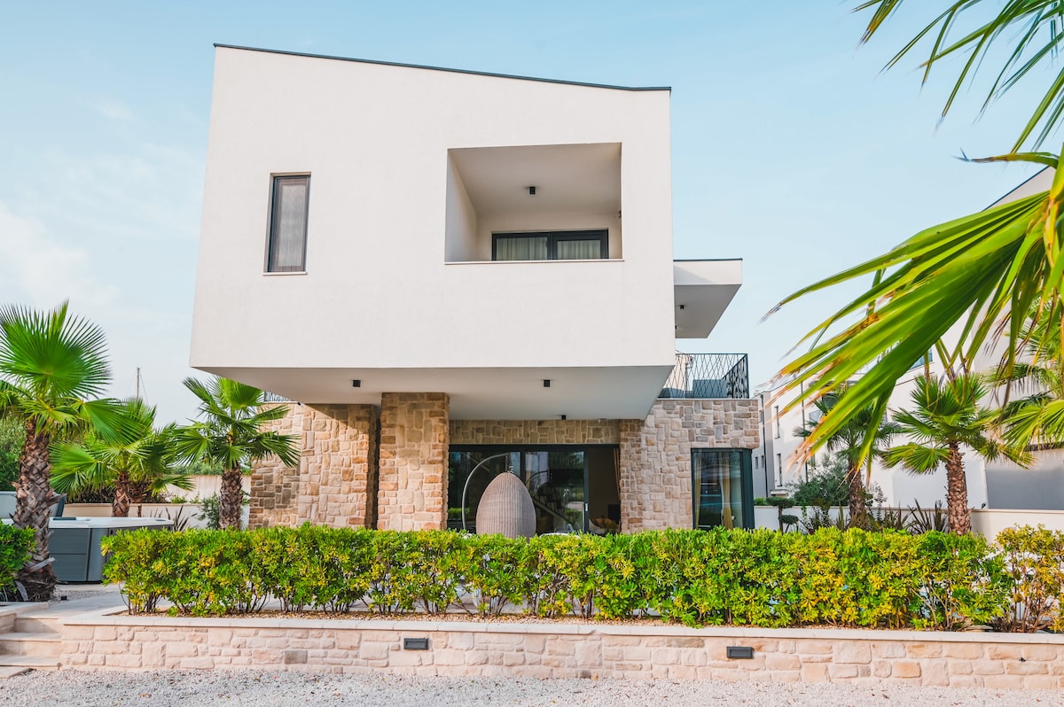 Our Buqez ECO Resort is a brand new and first class beachfront waterfront resort located in a very popular tourist area in Croatia near Zadar. The resort is a design collaboration of world renowned architects and landscape architects. It's a new model for waterfront beach villas that will provide you with leisure and a vibrant social interaction while being a multi-faceted recreational and cultural destination. The beach is almost every door of our beach - villas.The area offers many activities such as cycling and walking trails near the sea. Larger Croatian cities and airports are not far from the resort. Zadar is 40 minutes away by car, Sibenik 30 minutes, Biograd and Vodice 10 minutes. The largest fun park in Croatia can also be reached in a few minutes. A new golf course is being built near the Vrana Lake Natural Park, which is 5 minutes from the resort. One of the most beautiful beaches in Croatia is located on the island of Vrgada, with a red sand beach and a quaint restaurant serving delicious local food. From the resort you can get there by boat or local taxi boats in 20 minutes. On the way to the island you can see dolphins up close on special days.Our Buqez Eco Resort has two private beaches, the newly built facilities (restaurant, beach bar, toilets, showers, reception, two piers for private boats, etc.) are very modern in design. A floating wooden island and a meditation corner are also at your disposal and our beach bar is set up in cabana lounges where you can enjoy food and drinks.