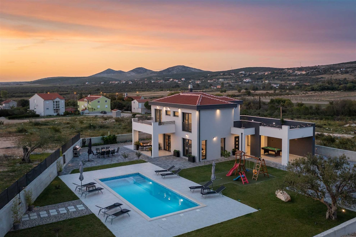 Our Buqez ECO Resort is a brand new and first class beachfront waterfront resort located in a very popular tourist area in Croatia near Zadar. The resort is a design collaboration of world renowned architects and landscape architects. It's a new model for waterfront beach villas that will provide you with leisure and a vibrant social interaction while being a multi-faceted recreational and cultural destination. The beach is almost every door of our beach - villas.The area offers many activities such as cycling and walking trails near the sea. Larger Croatian cities and airports are not far from the resort. Zadar is 40 minutes away by car, Sibenik 30 minutes, Biograd and Vodice 10 minutes. The largest fun park in Croatia can also be reached in a few minutes. A new golf course is being built near the Vrana Lake Natural Park, which is 5 minutes from the resort. One of the most beautiful beaches in Croatia is located on the island of Vrgada, with a red sand beach and a quaint restaurant serving delicious local food. From the resort you can get there by boat or local taxi boats in 20 minutes. On the way to the island you can see dolphins up close on special days.Our Buqez Eco Resort has two private beaches, the newly built facilities (restaurant, beach bar, toilets, showers, reception, two piers for private boats, etc.) are very modern in design. A floating wooden island and a meditation corner are also at your disposal and our beach bar is set up in cabana lounges where you can enjoy food and drinks.