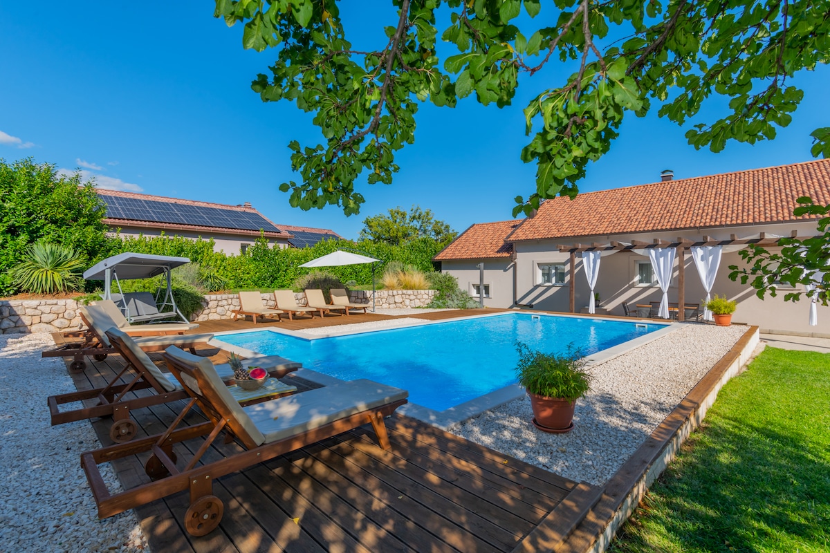 Beautifully decorated holiday house with a spacious garden is surrounded by greenery. It is located in the interior of Dalmatinska zagora near of the town Imotski. Place is good for couples, solo adventurers, business travelers, and families (with kids). It consists of ground floor and first floor connected to each other by internal stairs. Refreshment on hot summer days will provide you with a swimming pool located behind the house.