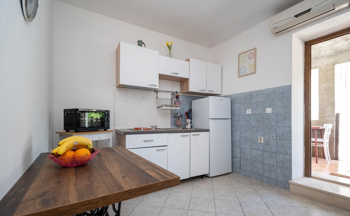 Newly renovated holiday home with a private pool and garden. The house is 80 m² with a 150 m² garden. It has two bedrooms, a kitchen with a dining area and living room, and a bathroom. The garden features a seasonal pool, a terrace with a dining table, a barbecue, sun loungers, and a solar shower. The pool and garden are for guests only, ensuring full privacy. Located 3 km from Zadar and 800 m from the sea and local beach.
