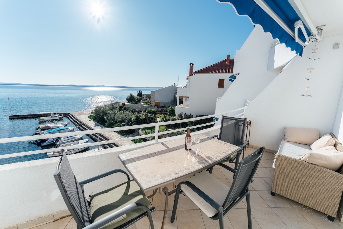The house is situated 10 m away from the sea. On the balcony apartments has private hot tube for 5 people. In front of the house, right next to the sea is a small garden with a grill and a big table for 8 people where you can catch the summer breeze in the natural shadow. On the beach, we place our sunbathing chairs and parasols so you can enjoy the sea and sun. In front of the house is the berth for the small boat or jet-ski ( up to 6m ).e whole family at this peaceful place to stay.