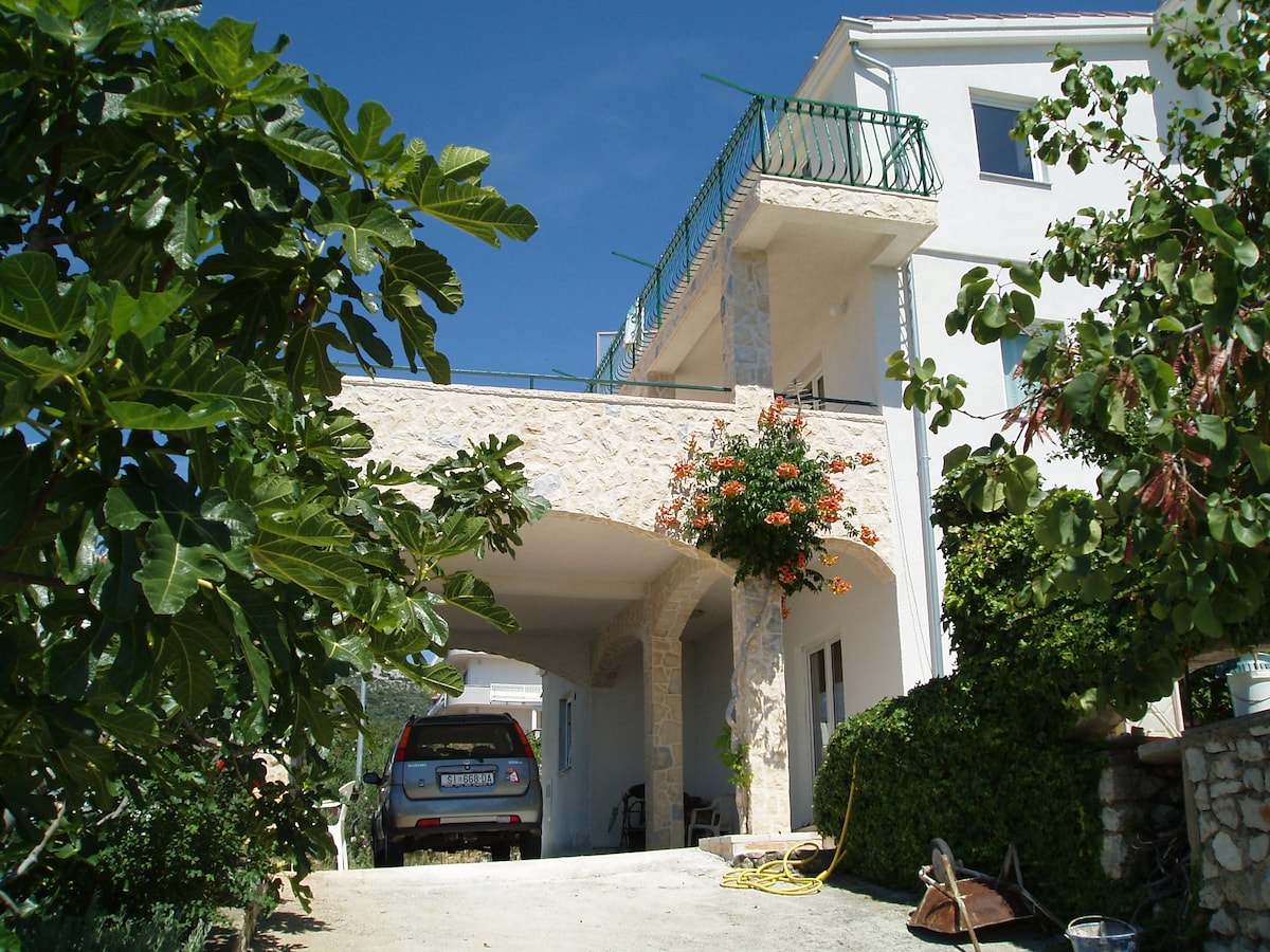 Exclusive 2 bedroom modern suite 2 meters from the beach. Suite is a part of Pearl House situated in small touristic place in the quite Adriatic bay. TV in each bedroom Fully equipped kitchen Air conditioning Bathroom with walk-in shower Swimming pool Wifi and free parking Bouy in the sea owned by the Pearl House in front of the Suite. Mooring can support the vessel up to 7m.For entering and exiting you can shortly dock by the pier in front of the Suite.