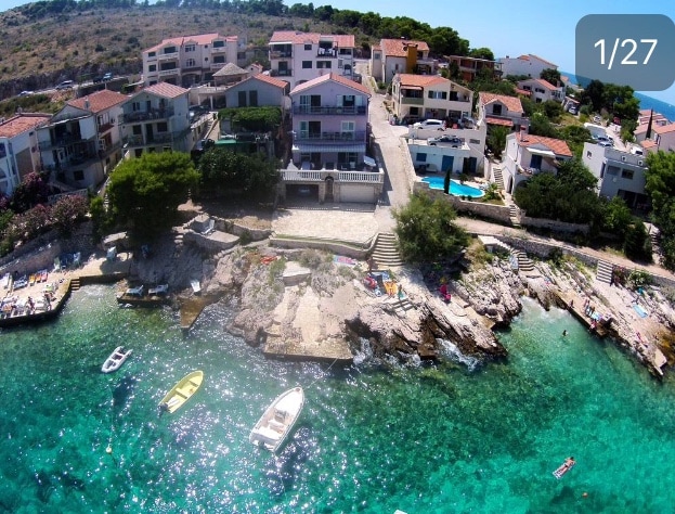 A Robinson tourism dream house situated by the sea and in a secluded area of a traditional olive grove and vineyard with over 4000 square meters large. The lot is located literally 10 meters from the sea offers one of the most authentic sunset experiences in Dalmatia. It has private access to a secluded beach beneath the estate. Go for a warm night swim or walk down the nearby promenade. Breathe the fresh air, feel the salty breeze on your face and heal your body&soul.