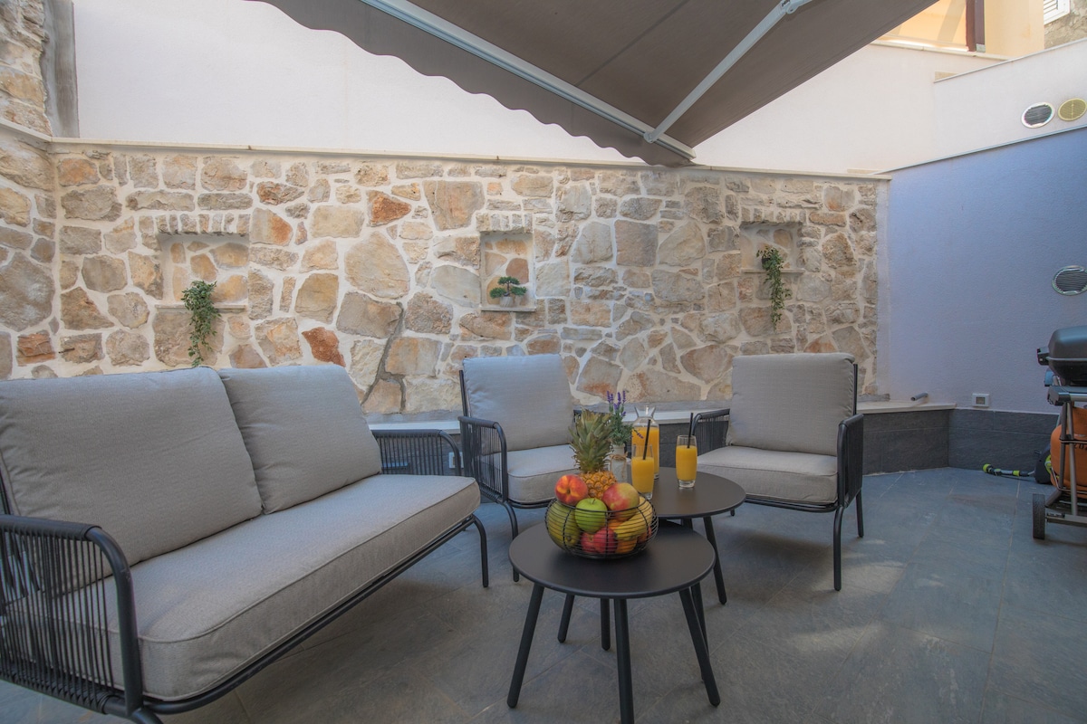 Looking for a relaxing holiday just near the beach? Situated just 10m from the beach, in the center of the town, spreads over three floors with stunning view on a port. With terrace and balcony our house will give you holiday to remember. Just imagine that you can sit on the terrace and watch your children on the beach, sounds good ? Let our traditional Dalmatian stone house Popožo be the place for a holiday of your life and place to come back once again.