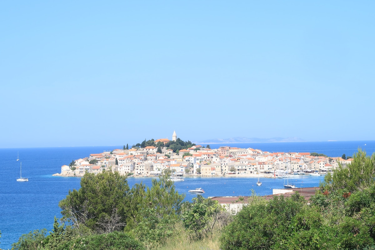 SERENITY & SUPERB VIEW Traditional Mediterranean villa with a touch of luxury on a quiet green hill above Primosten, away of tourist crowds and traffic, surrounded by bike trails that meander between olive groves down to Primosten's famous white pebble beaches with crystal turquoise sea, only 5 minutes from the villa (free parking by the beach). Enjoy the breathtaking view of Primosten, islands, Kornati, even Italian peaks across the Adriatic sea. Beware of the beautiful sunsets "overdose"! :-)