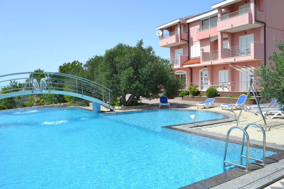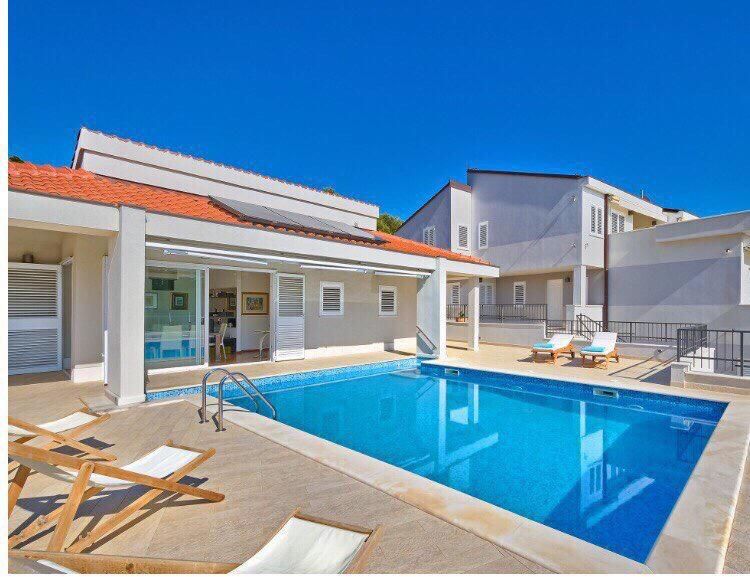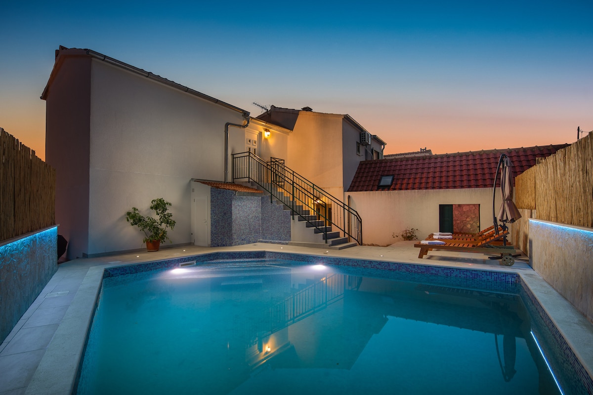 Kuča nudi smještaj za 8 do 10 ljudi sa privatnim bazenom,ležaljkama,muzikom, igralište za odbojku,badminton,vanjska kuhinja sa roštiljem,vanjski tuševi, park,trava..parking za aute u hladu,unutar objekta.Club-bar privatni u sredini smještaja samo za goste smještaja, te još mnogo opcija zabave!!