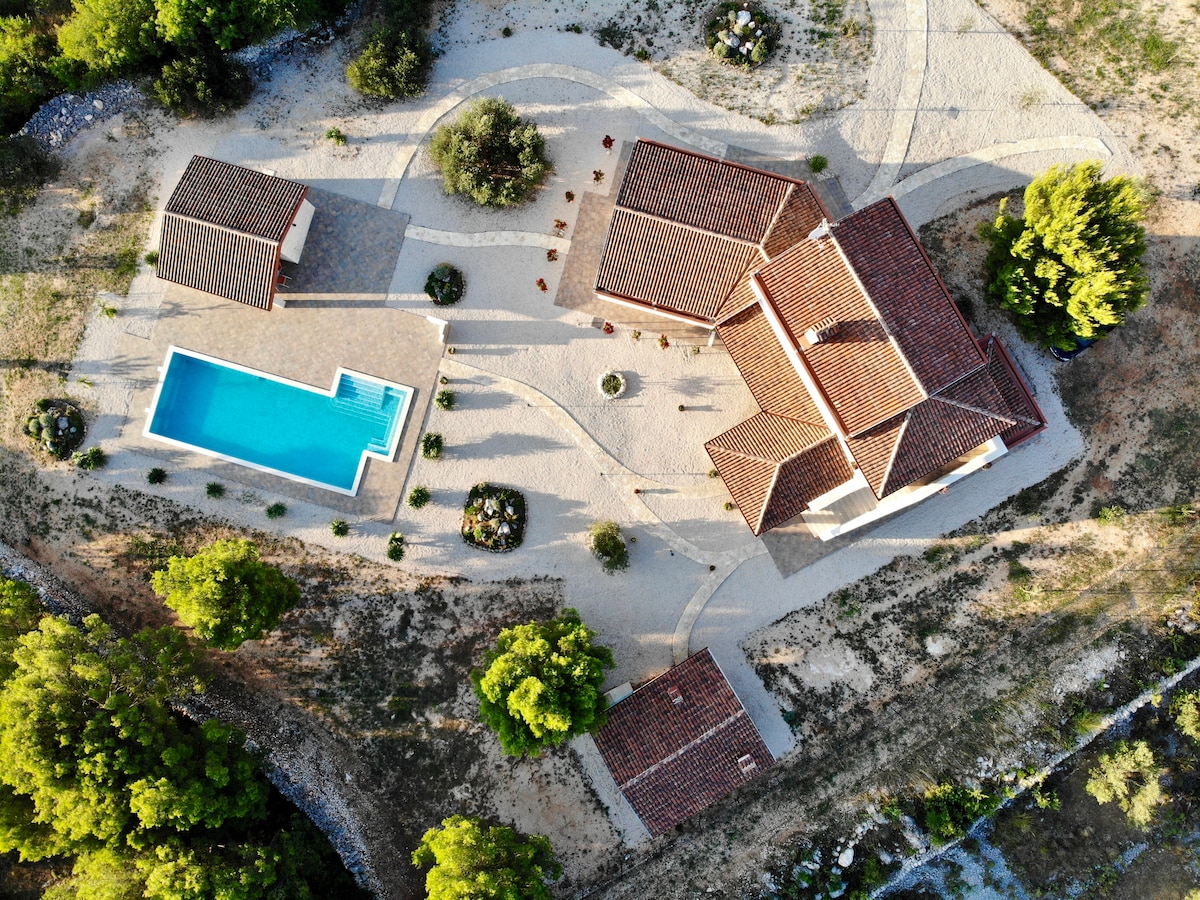 Wake up to panoramic Adriatic views in a quiet home above Primošten. Every room looks toward the sea, and the four upstairs bedrooms open to a wide private terrace for slow mornings outdoors. The saltwater pool sits surrounded by nature, perfect for relaxed swims, while the open-plan living area flows easily to the garden. Enjoy meals in the roofed outdoor kitchen or rest in the shaded lounge – a peaceful base for family or friends, just a short drive from the coast.
