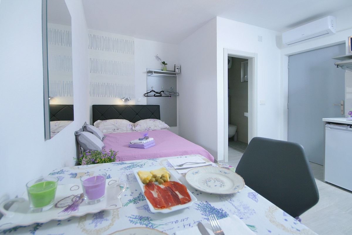 Studio apartman se nalazi u mirnom kvartu na udaljenosti od približno 300 m od mora. Gostima je na raspolaganju suvremeno opremljen studio sa svim temeljnim i dodatnim kuhinjskim sadržajima, velikim bračnim krevetom i novouređenom kupaonicom. Ispred apartmana se nalaze terasa, roštilj i vrt s bogatom ponudom povrća. Seget Vranjica je malo ribarsko mjesto s predivnim plažama i odličnim restoranima s domaćim specijalitetima