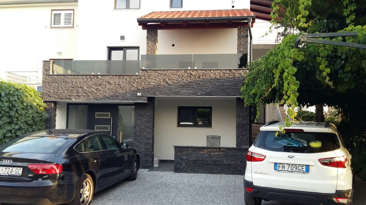 Dvosoban apartman u našoj kući za odmor s moderno opremljenom kuhinjom. U kući se nalaze četiri takva apartmana. U apartmanu su gostima na raspolaganju perilica rublja, perilica posuđa, aparat za kavu, klima uređaj, mikrovalna pećnica, štednjak itd. Također na raspolaganju im je besplatan Wi-fi, besplatan parking u sklopu objekta, besplatno korištenje bazena, grilla, jacuzzija, saune i manjeg dječijeg parka u dvorištu kuće.