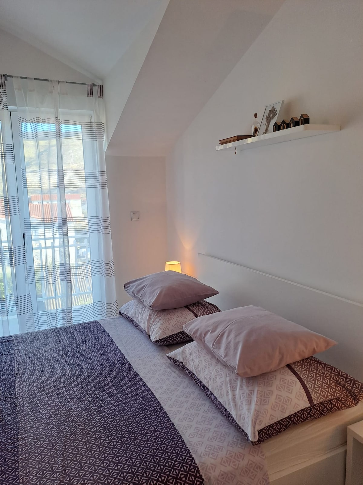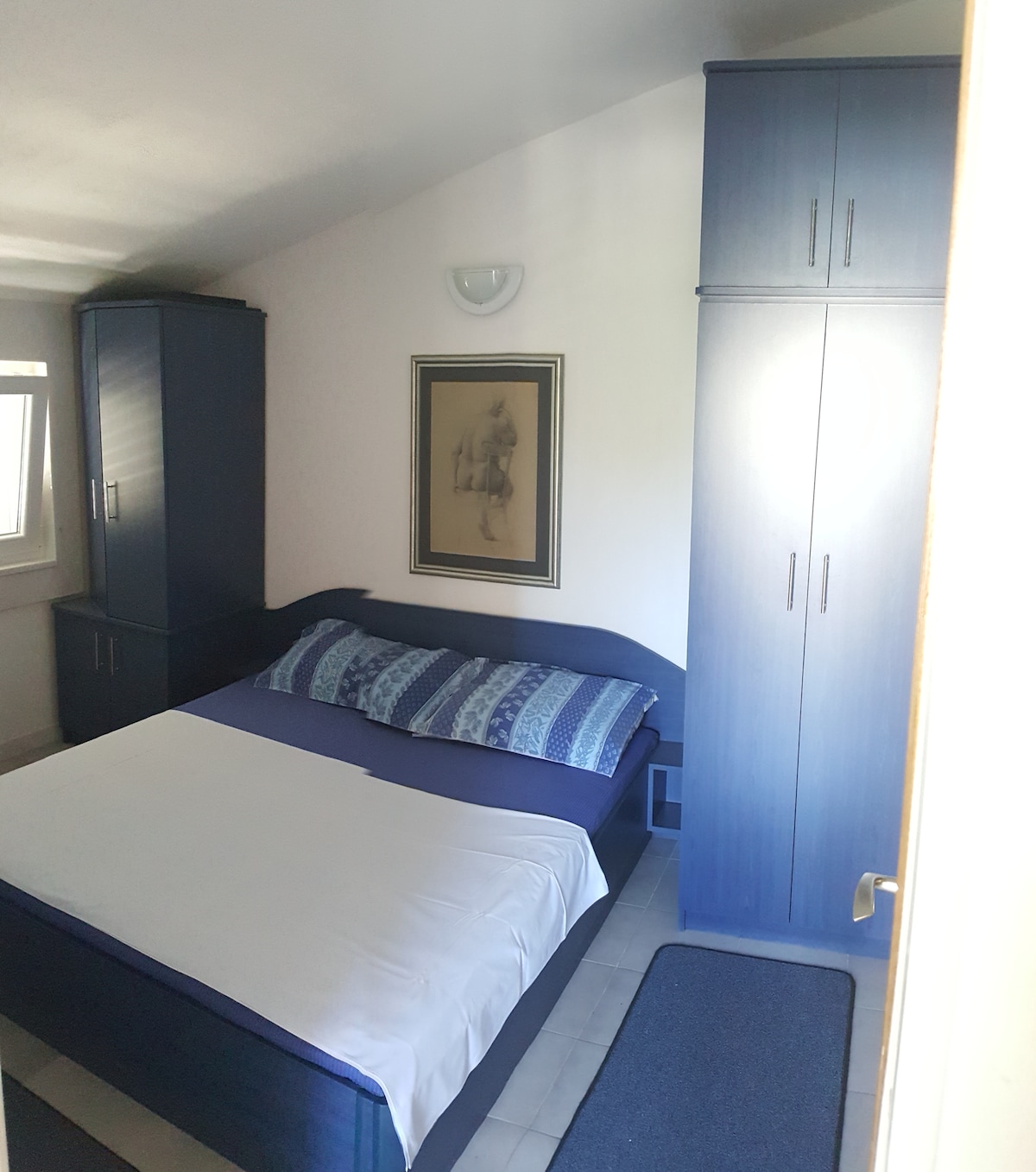 Apartman povrsine 40 metara kvadratnih,sastoji se od jedne spavace sobe,kupaonice , dnevnog boravka povezanim s kuhinjom,u kojem se nalaze dva kauca koja se mogu istegnuti kao lezaji.udaljenost 250metara od mora u mirnom naselju.Osigurano mjesto na plazi za ostavljanje rucnika.Osiguran parking.