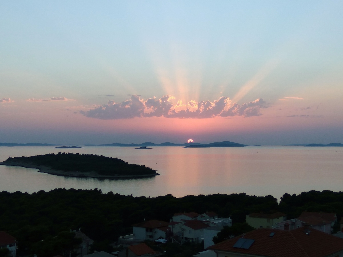 SERENITY & SUPERB VIEW Traditional Mediterranean villa with a touch of luxury on a quiet green hill above Primosten, away of tourist crowds and traffic, surrounded by bike trails that meander between olive groves down to Primosten's famous white pebble beaches with crystal turquoise sea, only 5 minutes from the villa (free parking by the beach). Enjoy the breathtaking view of Primosten, islands, Kornati, even Italian peaks across the Adriatic sea. Beware of the beautiful sunsets "overdose"! :-)