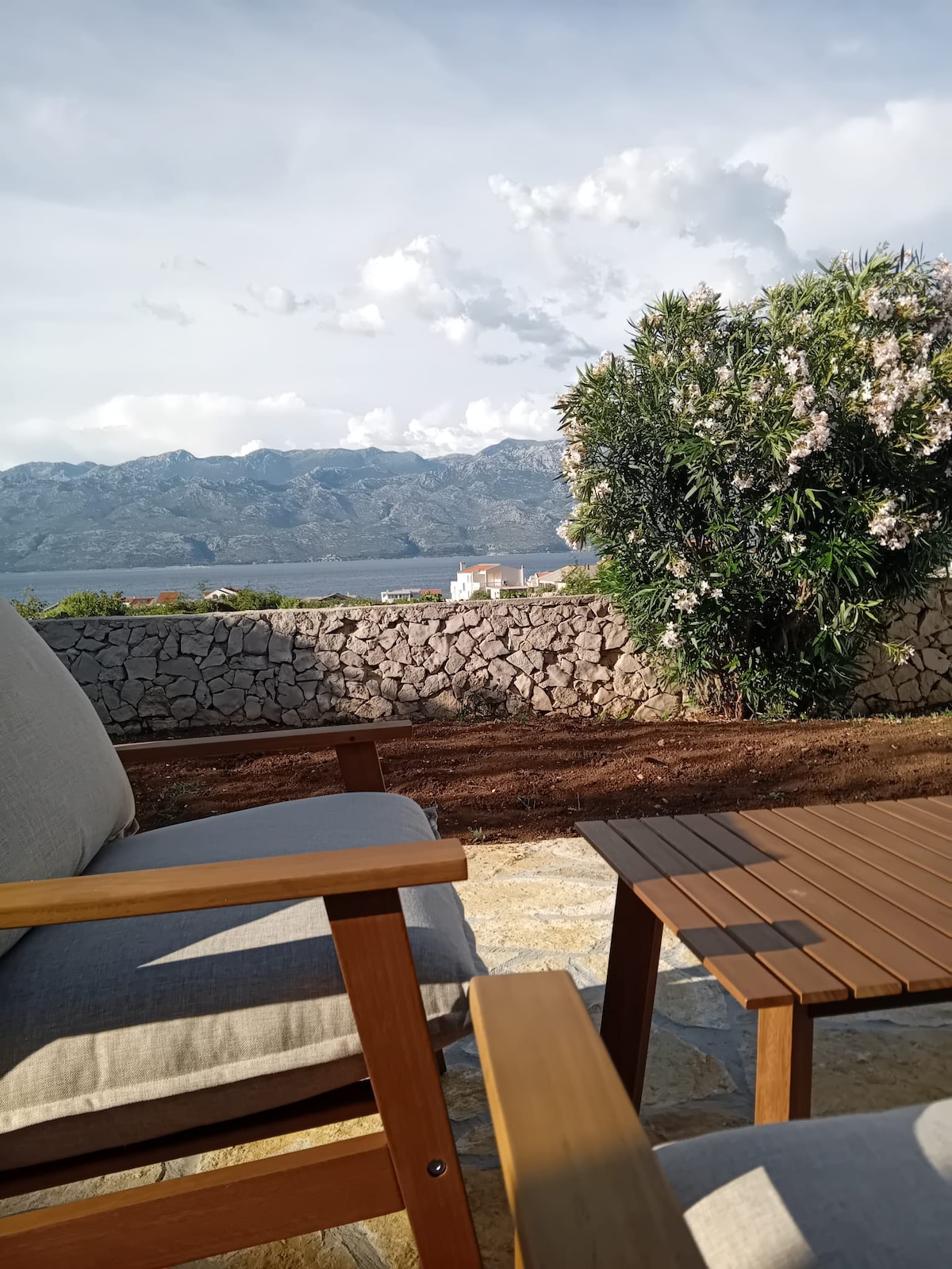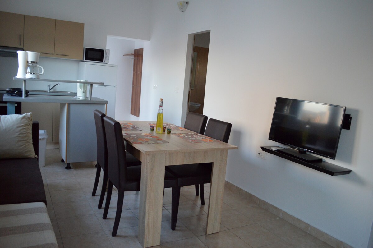 **New stone apartment near the sea with fantastic sea view**. Apartment 55m2 for 2 + 1guests . Spacious living room with sofa that becomes a double bed (smart TV, air conditioning)Kitchen (oven, dishwasher, coffee machine). 1. Bedroom (large double bed, wide wardrobe) with toilet (shower). The apartment has a private terrace (10m2) with amazing sea views. The terrace contains a table for 4 people.