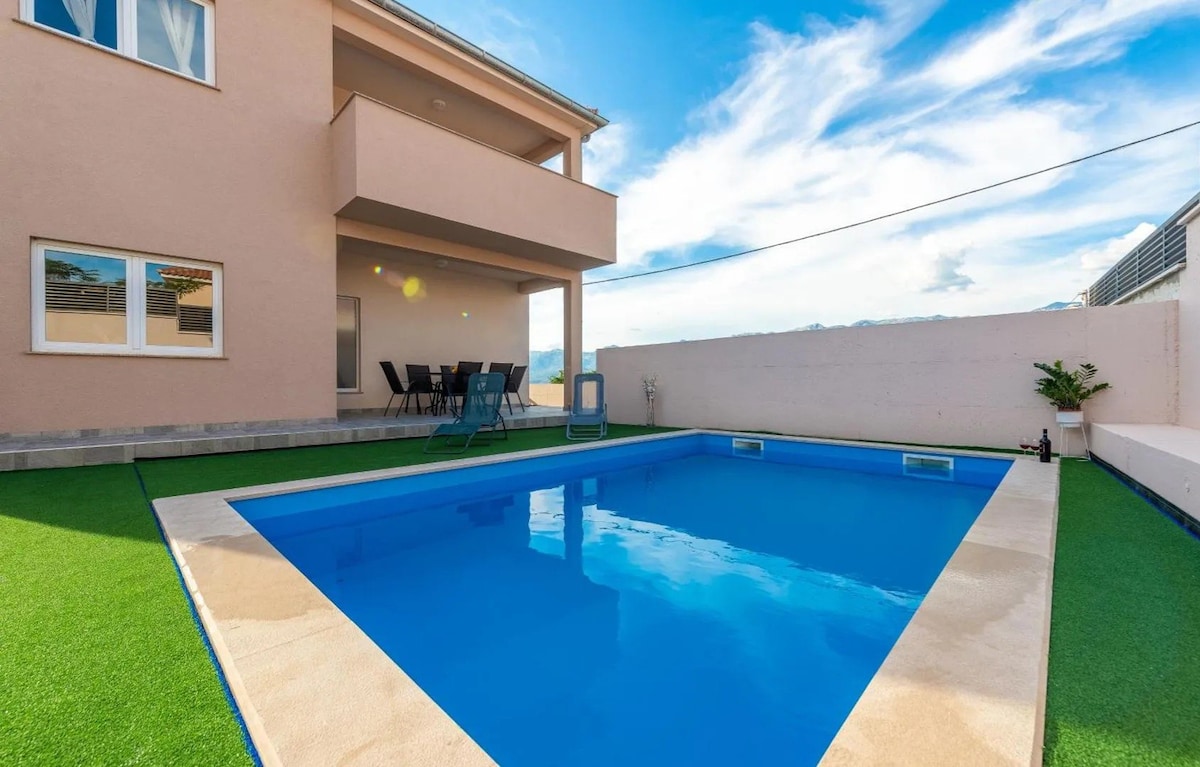Entire house with a pool, located in Poljica, near beautiful towns of Zadar and Nin. Three bedrooms and two bathrooms. Peaceful and quiet, away from traffic and city noise. Variety of nearby beaches (sand, pebble, hidden), all available within 7-20 minutes by car. National parks with all their beauty are just an hour away. Or you can just rest by the pool.