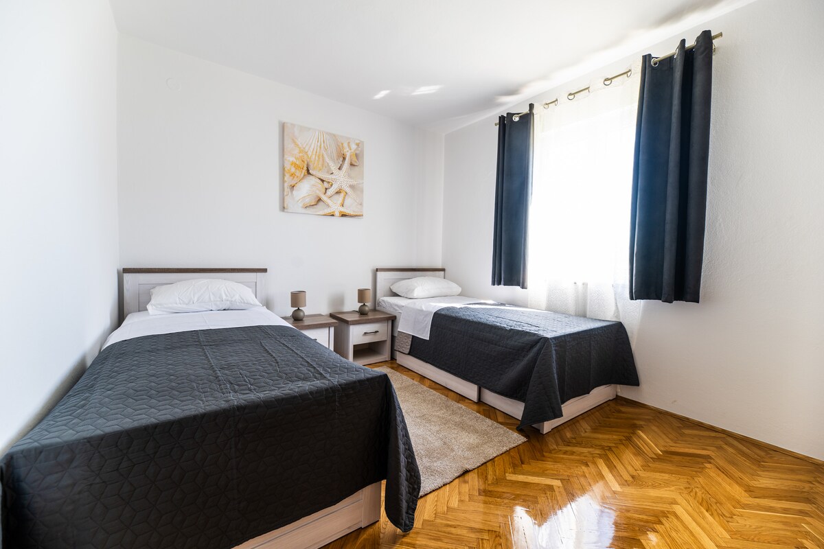 We offer a newly built apartment with two bedroom,bathroom and an equipped kitchen.The apartment is located in a small village called Baraći.In addition to the apartment there is a fireplace right next to it and a yard for kids to play and you to enjoy summer evenings.We also offer a shuttle service from the airport, scuba diving experience and a lot more.