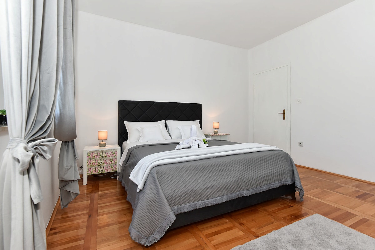 Apartman OLIVE se sastoji od dvije spavace sobe ,kuhinje dnevnog boravka,wc-a kupatilo i sa dva velika balkona.U blizini apartmana se nalazi market,kafic,plaza,restoran udaljen 5km,grad Zadar sa svojim znamenitostima :forum,crkva sv.Donata,morske orgulje,pozdrav suncu,je udaljen 20km,nacionalni park Paklenica 20km,rijeka zrmanja 20km,pogled na otok Pag,na planinu Velebit i puno toga.Apartman moze primiti 4 odrasle osobe +dijete (djeciji krevetic)