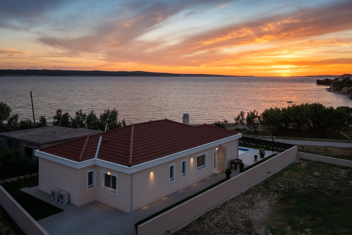 Lass Dich und deine ganze Familie von dieser modernen Luxusvilla mit einem atemberaubenden Blick aufs Meer verzaubern! Sie verfügt über einen 7x3m großen beheizten Pool, eine große Terrasse, eine charmante Grillhütte mit Bar-Theke, und eine Feuerstelle. Die Villa ist 17 km von der historischen Stadt Zadar entfernt. Sie entfaltet sich auf zwei Etagen: oben 4 komfortable Schlafzimmer, unten ein gemütlicher Wohnraum mit moderner Küche. Klimatisierte Räume, ruhige Umgebung, Nähe zum Sandstrand.