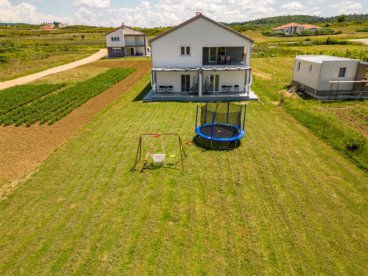 Welcome to your perfect holiday escape in the peaceful village of Poljica Brig, just 10 km from the vibrant coastal city of Zadar and the stunning sandy beaches of Nin. Here, you'll enjoy the best of both worlds—close enough to explore the lively Adriatic coast, yet far enough to unwind in the serenity of the countryside, with nothing but the sound of crickets and warm summer evenings to keep you company.<br><br>