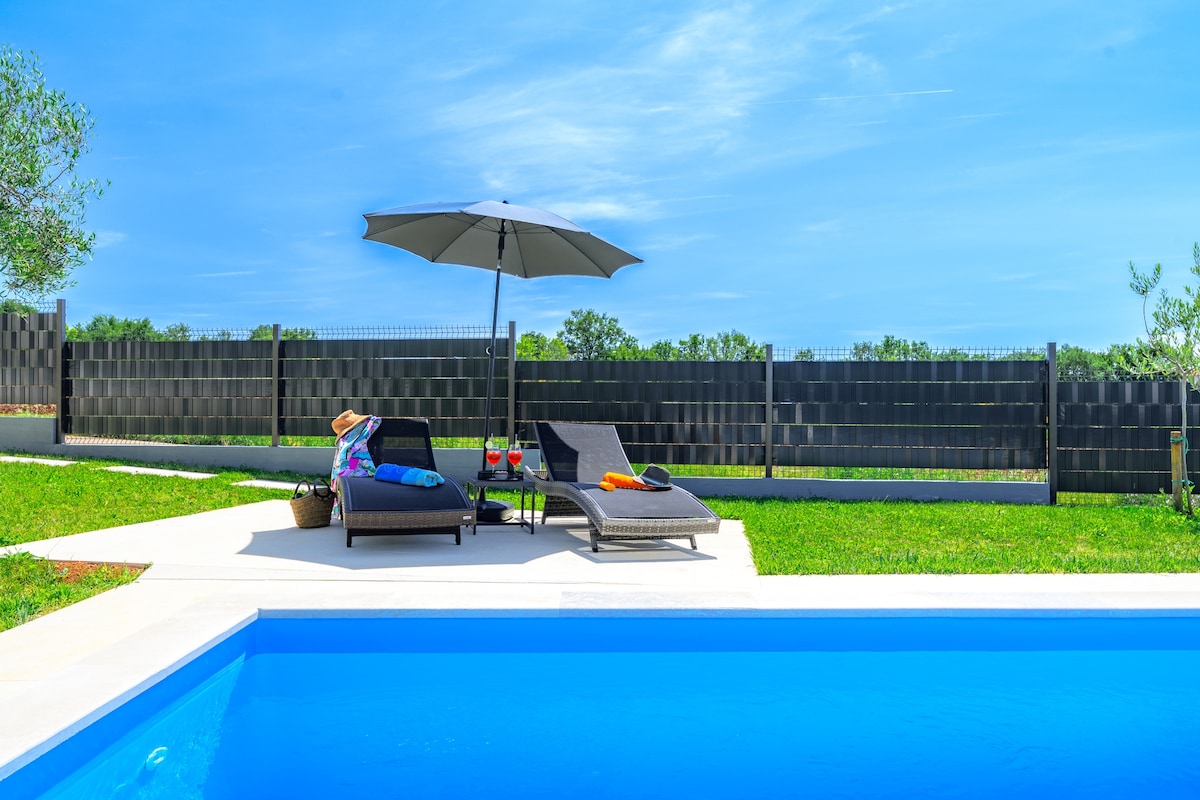 Enjoy the tranquility of your own private vacation with the convenience of city life in a few minutes! The Sunset apartment is located in a beautiful and quiet location in Novigrad. It is equipped with luxurious indoor and outdoor furniture, with a private yard with a swimming pool next to which there is an olive grove with beautiful olive trees, private parking is available, relaxation area with deckchairs. Accommodation offers complete comfort and privacy.
