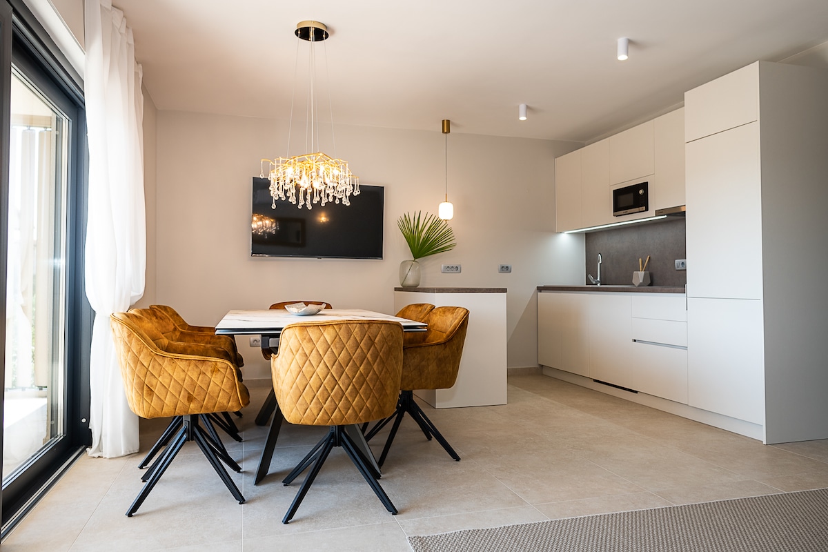 Luxury apartment GioAn, in Novigrad, 7 minutes walking distance from the beach, close to the city center and all facilities such as supermarket, pharmacy, fish market, restaurants.. 2 bedrooms, bathroom, living room (with sofa bed), fully equipped kitchen (microwave, blender, espresso machine, oven, dishwasher, toaster, kettle, fridge, freezer, wine fridge), front covered terrace (with all el. blinds) with outdoor kitchen, BBQ area, private heated Jacuzzi. *BREAKFAST IS OPTIONAL (EXTRA SERVICE)