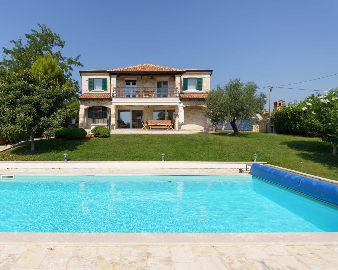 Looking for a destination for your holiday, visit the city Tar in Istria and stay at our 4-Star Villa Ocelli with Pool. The house can accommodate up to 6 people and is a great choice for a family or friends traveling together. This modern villa has 3 bedrooms and 3 bathrooms, plus one toilet. All bedrooms have an en-suite bathroom, 2 of them have king-sized beds and one has a double bed.