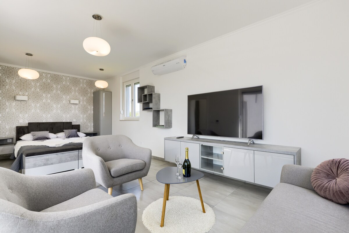 *** New addition: A medium sized lux apartment in Biograd's centre, freshly renovated! *** Located just one traffic light from the centre/riva, two streets from the marina, 300+ meters from 4 beaches & in the same building as the 5 star rated restaurant Boqueron, it's walking distance from everything. With one 5kW AC & two ceiling fans, you'll have no problem cooling off on these hot summer nights. Enjoy your stay and/or check out my other one! :)
