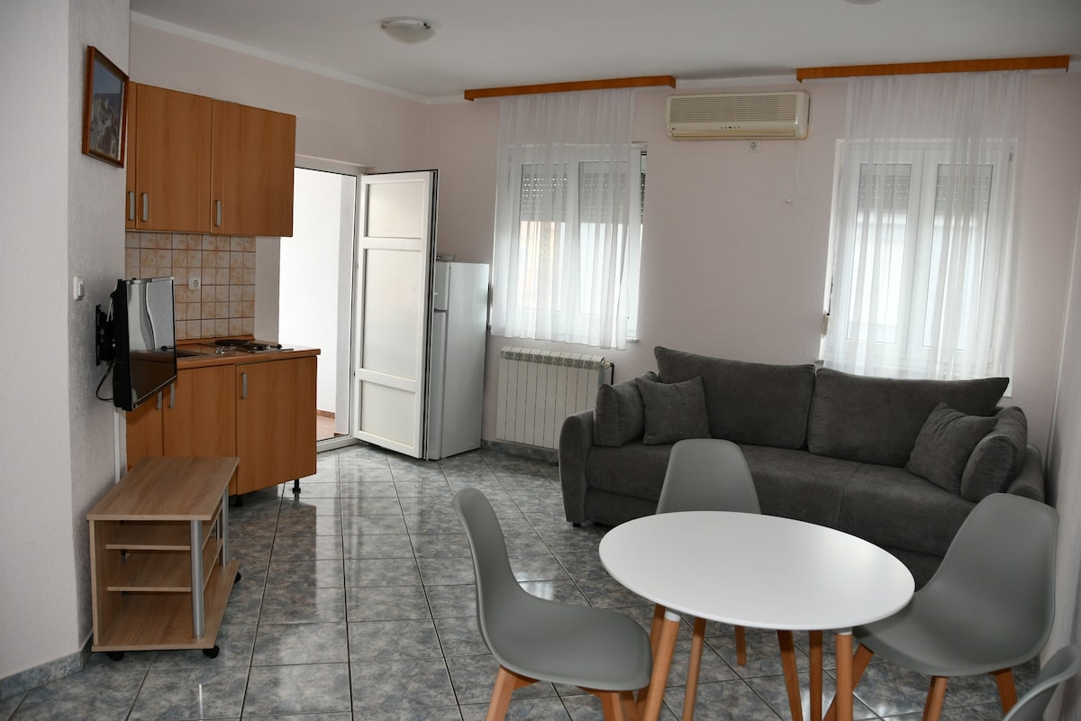 Spend your vacation in a splendid little town of Biograd, near Zadar, in our cozy 1-bedroom apartment on the upper ground floor in a private vacation house. The apartment has a spacious terrace with relaxing garden view where you can enjoy your morning coffee or late night glass of wine. Only 5-minute relaxing walk to beach and about 10-minute to downtown. The apartment offers free Wi-Fi, private parking area and shared BBQ.