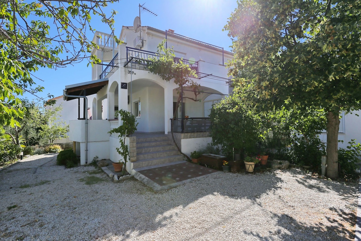 Spend your vacation in a splendid little town of Biograd, near Zadar, in our cozy 1-bedroom apartment on the upper ground floor in a private vacation house. The apartment has a spacious terrace with relaxing garden view where you can enjoy your morning coffee or late night glass of wine. Only 5-minute relaxing walk to beach and about 10-minute to downtown. The apartment offers free Wi-Fi, private parking area and shared BBQ.