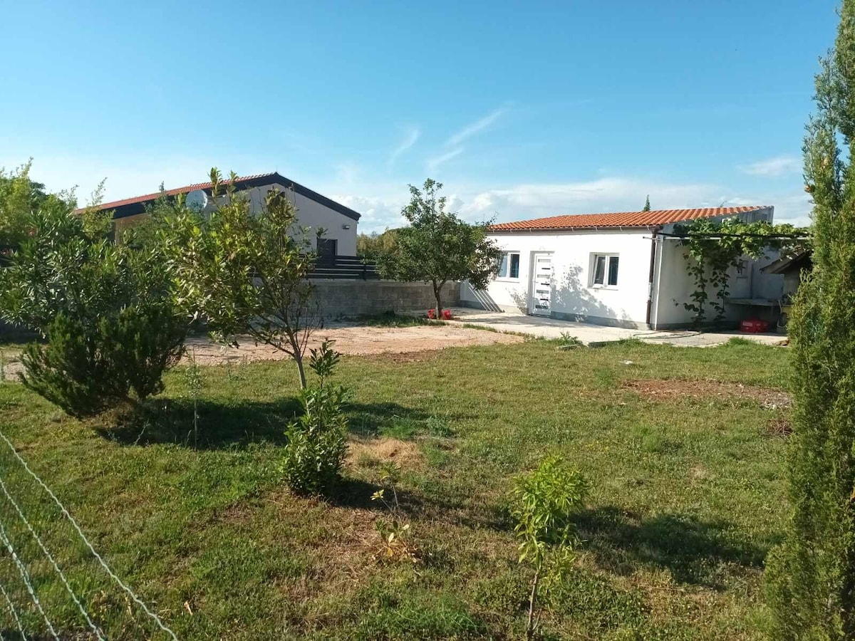 Opustite se sa svojom obitelji u ovom ugodnom smještaju, u mirnom okruženju sa bazenom, Kamado roštiljem, stolom uz bazen, terasom na ulazu u kuću , velikim dvorištem i 2 parkirna mjesta unutar dvorišta. Udaljenost Nin3,5km, Zadar 17km, Airport Zadar 27km, NP Paklenica 45km, NP Krka 60km, NP Kornati 80 km, NP Plitvička Jezera 120km. Okolinu možete istraživati šetnjom ili vožnjom bicikla kroz prirodu. U blizini kuće nalazi se javno malonogometno igralište sa umjetnom travom.