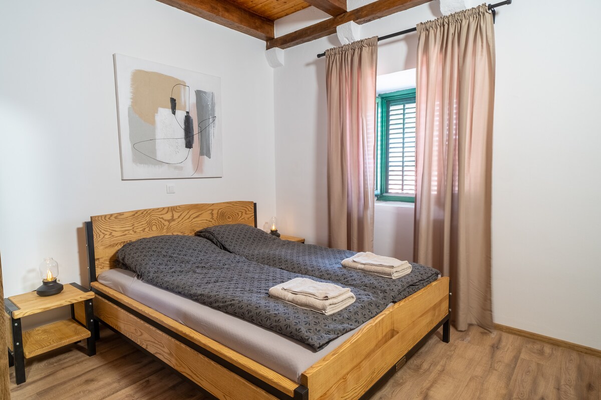 The apartment has two bedrooms, a dining room connected to the kitchen and a bathroom. The house is a heritage built in the 17th century, overlooking the Mlini harbour and the beach. It comes with a huge garden with lemon and orange trees, grape wives and fig trees and also has outdoor grill and fire place. The village's second oldest tree can be found in the garden, that is 200 years old. Important information: the house is ONLY ACCESSIBLE BY STAIRS and we DO NOT HAVE PARKING