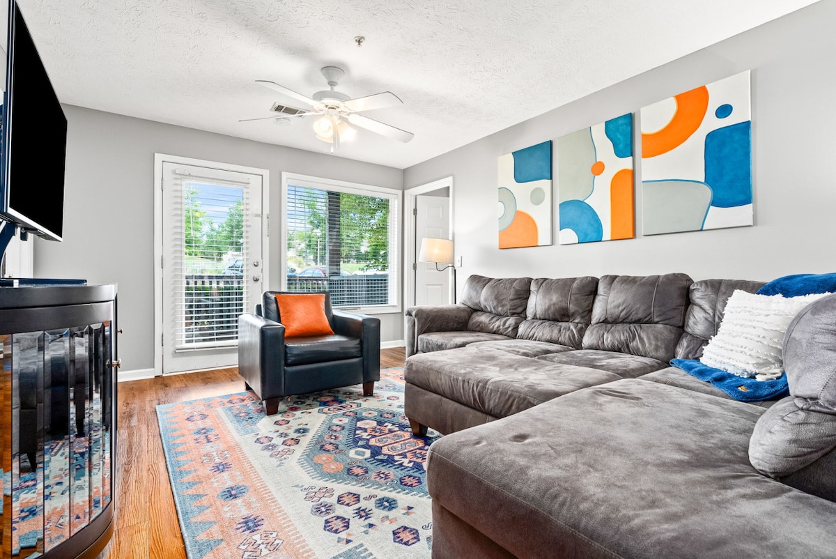 This cozy 1-bedroom condo is perfect for a stay in Auburn. Located across the street from the AU Vet School & Equestrian Center and less than 2 miles from Jordan-Hare Stadium and downtown, this spot is ideal for everything AU. Features you'll love: Queen bed & pull-out sofa bed High-speed WiFi & two large flat-screen TVs Fully equipped kitchen In-unit washer and dryer Full bath with essentials Community pool & lots of parking Wheelchair-accessible condo *no ramp from the parking lot